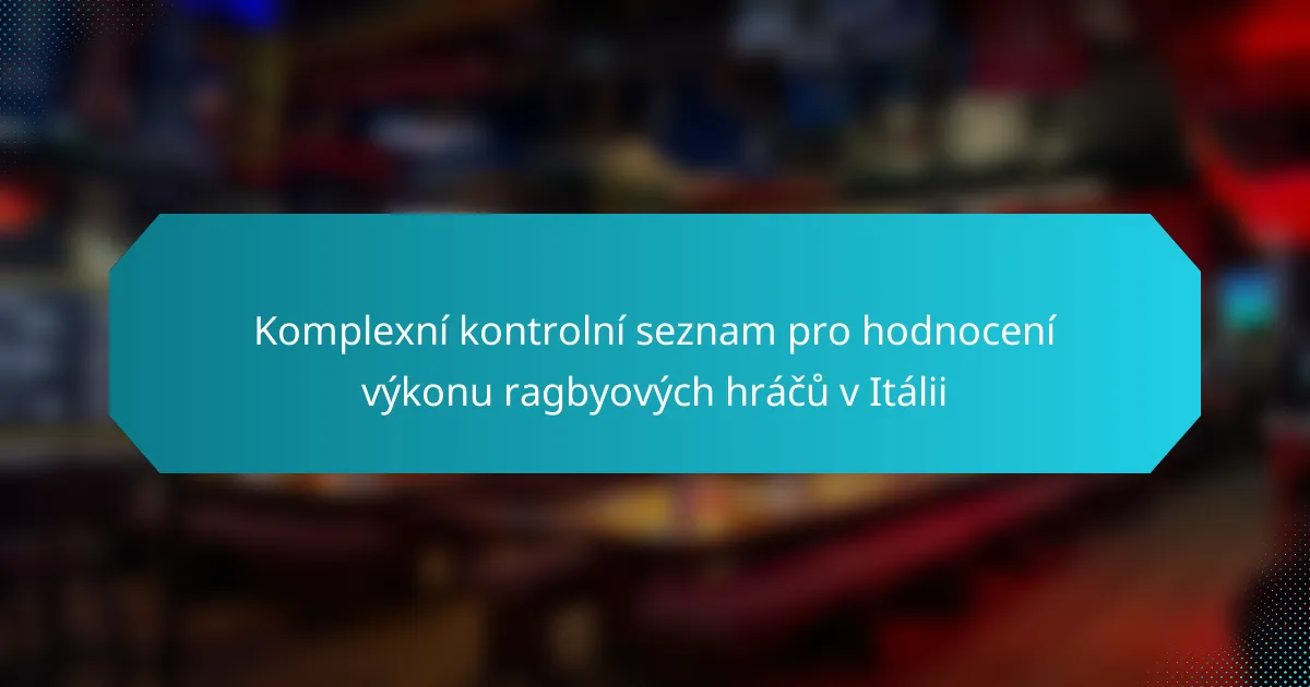 Hodnocení výkonnosti rugby hráčů v Itálii zahrnuje komplexní kontrolní seznam, který zahrnuje klíčové ukazatele výkonnosti (KPI) napříč různými dimenzemi hry. Zaměřením se na fyzickou kondici, technické dovednosti, taktickou znalost, psychologickou odolnost a týmovou spolupráci mohou trenéři a skauti efektivně posoudit příspěvek hráče a jeho potenciál pro růst. Tento strukturovaný přístup zajišťuje, že jsou zohledněny všechny kritické aspekty výkonnosti hráče, což vede k informovanějším rozhodnutím v oblasti rozvoje hráčů a výběru týmu.