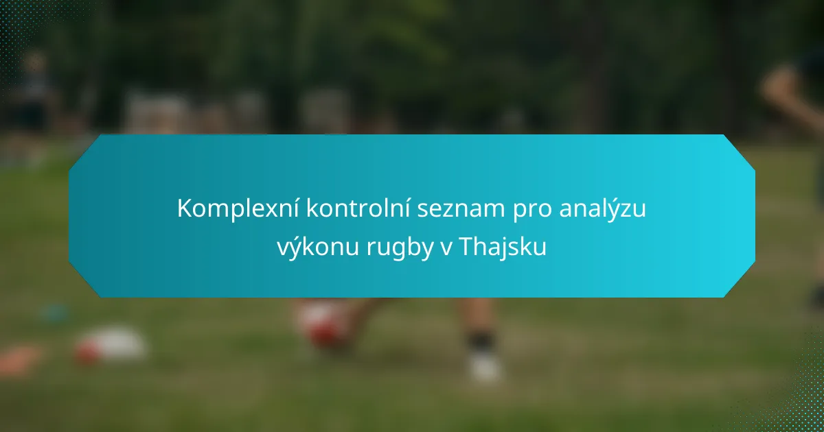 Analýza výkonu v rugby je nezbytná pro hodnocení efektivity hráčů a týmové strategie, zejména v rostoucí rugby scéně v Thajsku. Využitím komplexního kontrolního seznamu mohou trenéři systematicky hodnotit různé komponenty, jako jsou statistiky hráčů, fyzická kondice a týmová dynamika. Implementace tohoto strukturovaného přístupu spolu s moderními technologiemi umožňuje informované rozhodování, které zlepšuje jak trénink, tak výkon ve hře.