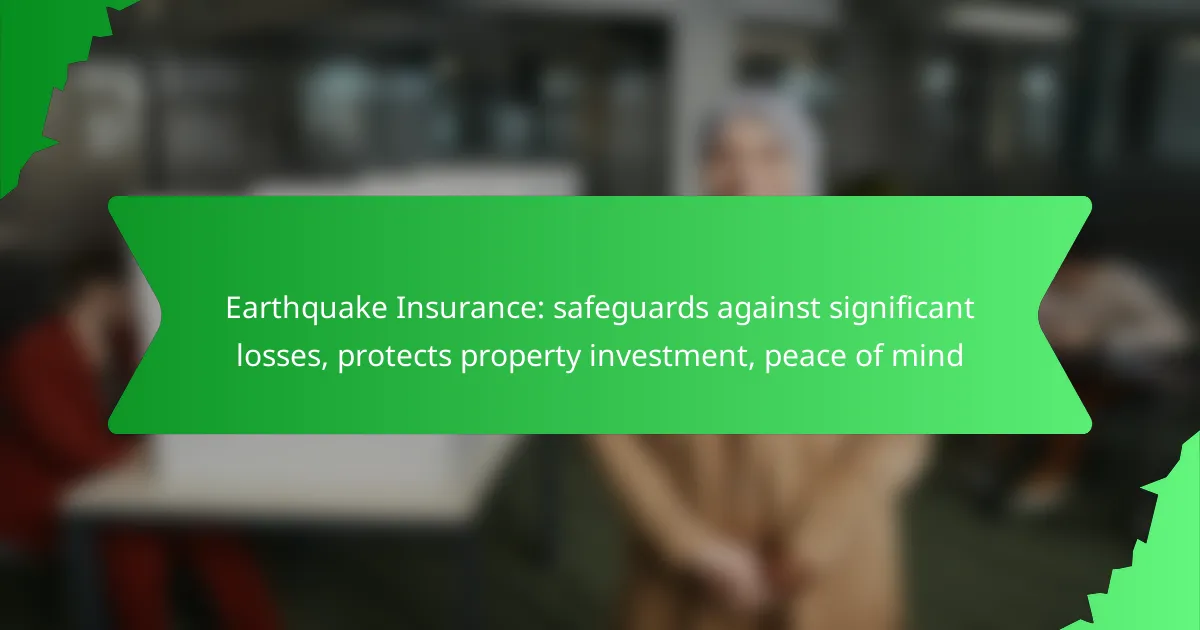Earthquake insurance is a specialized policy designed to cover damages to property caused by seismic events. It is crucial for homeowners and property investors in earthquake-prone areas, as it safeguards against significant financial losses and protects property investments.